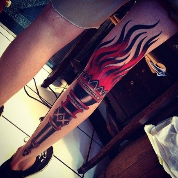 腿部霸气的火炬纹身_腿部纹身图案大全_纹身图吧