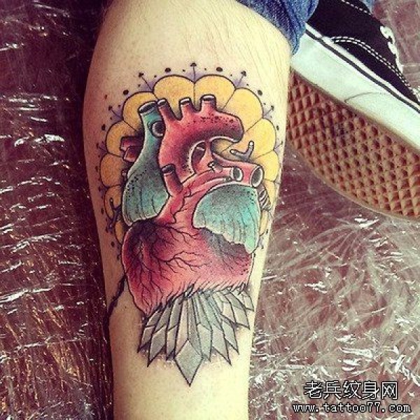 腿部心脏纹身图案_腿部纹身图案大全_纹身图吧