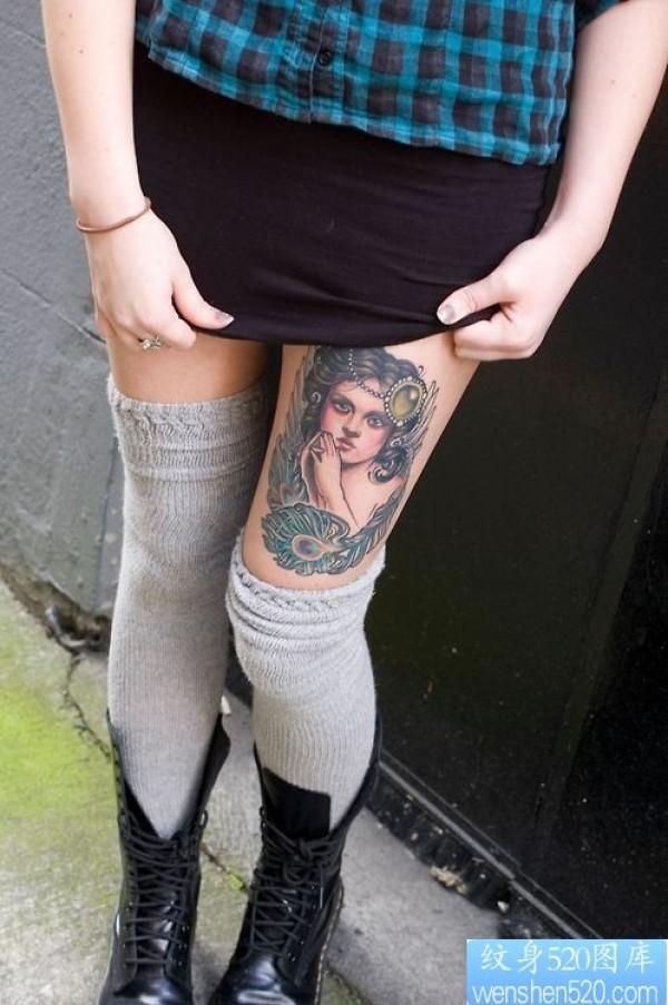 腿部女郎纹身作品_腿部纹身图案大全_纹身图吧