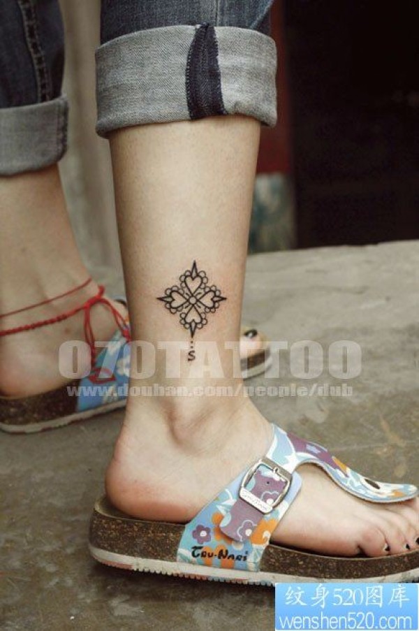 展示一幅小腿上简单的四叶草纹身作品_腿部纹身图案大全_纹身图吧