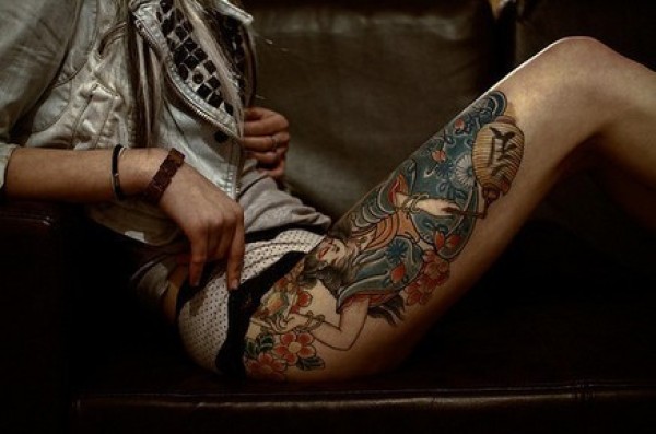 修长大腿上的古典美女纹身图现在潮流美女和古_腿部纹身图案大全_纹身图吧