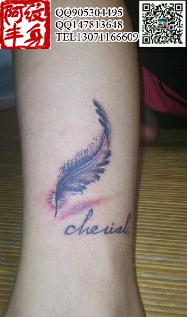 腿部羽毛笔纹身图案_腿部纹身图案大全_纹身图吧