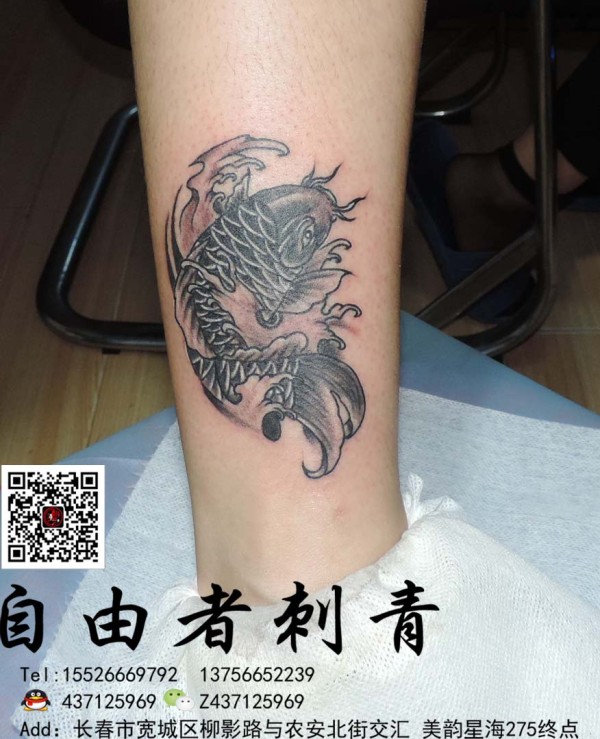 小腿上素色小鲤鱼图案纹身素色小鲤鱼图案纹身_腿部纹身图案大全_纹身图吧