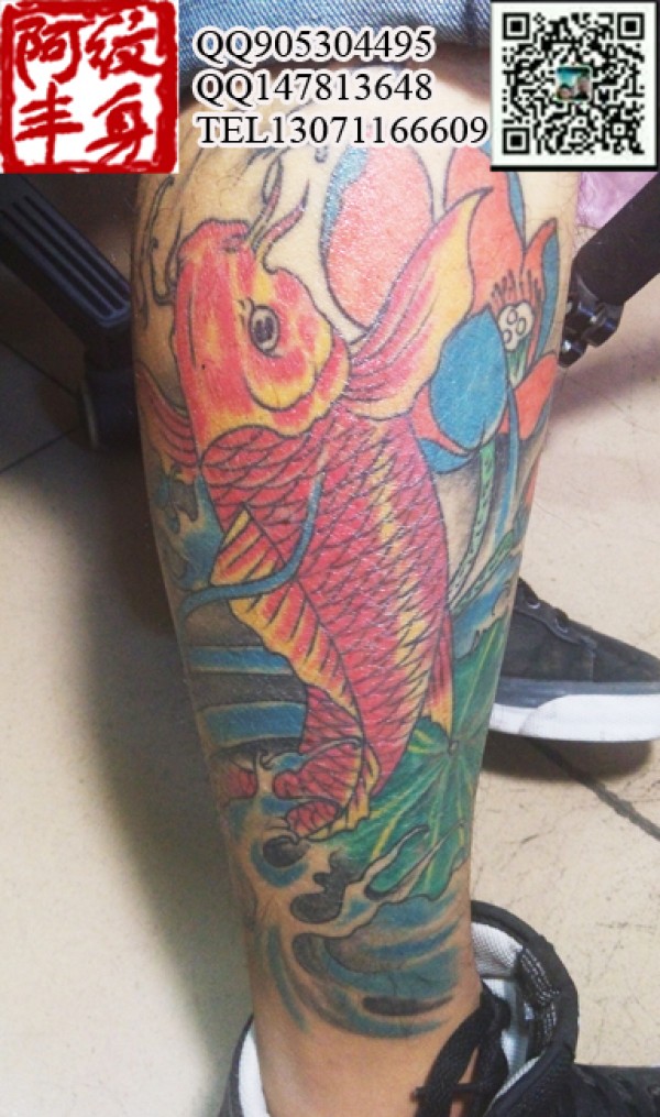 包小腿彩色鱼纹身_腿部纹身图案大全_纹身图吧