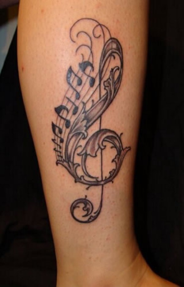 小腿上比较大的音符图案纹身花藤形式的音符图_腿部纹身图案大全_纹身图吧