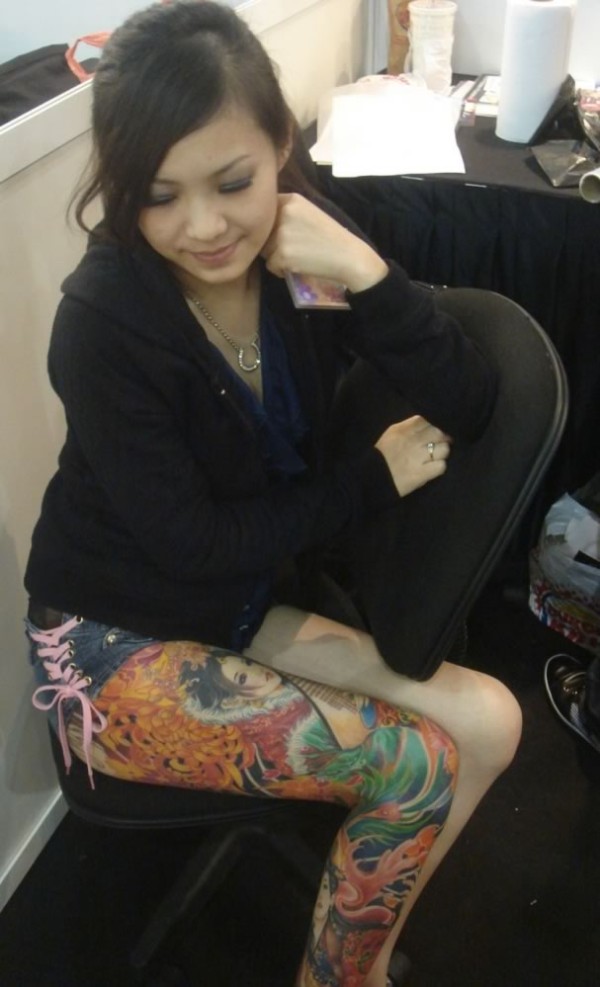 又一个美女用纹身征服了观众_腿部纹身图案大全_纹身图吧
