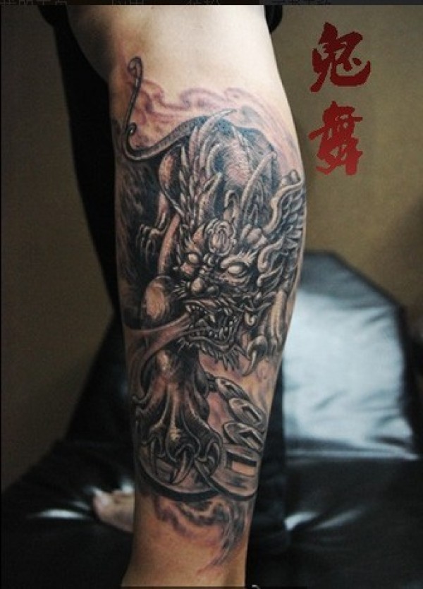 龙纹身手稿_一组老传统黑灰龙手稿纹身图案