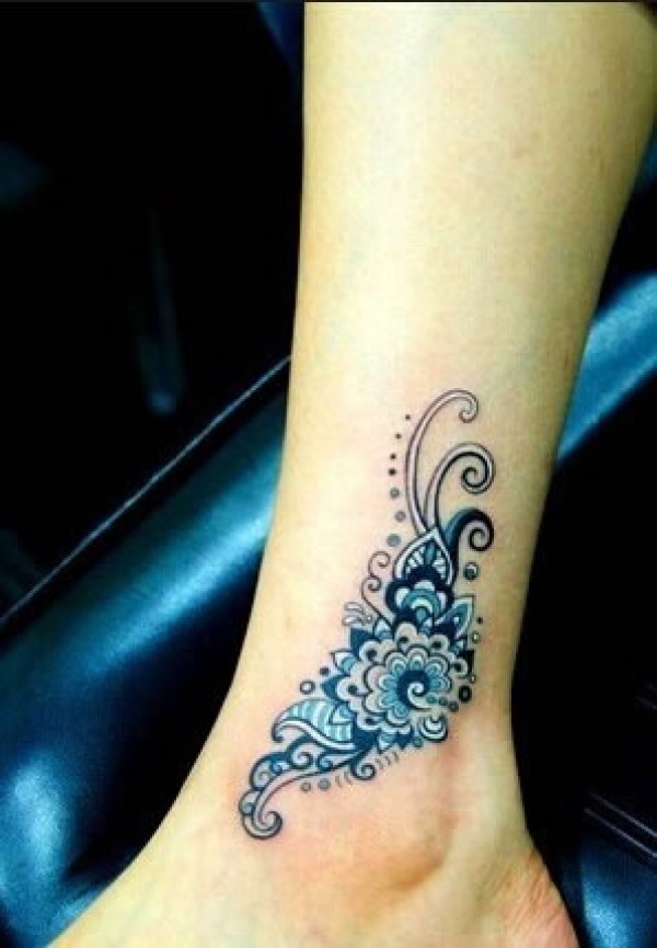 脚部漂亮的花朵纹身图案_腿部纹身图案大全_纹身图吧