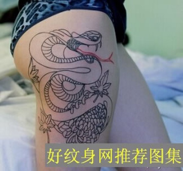女生大腿上灵动的蛇纹身图单线蛇纹身图案_腿部纹身图案大全_纹身图吧