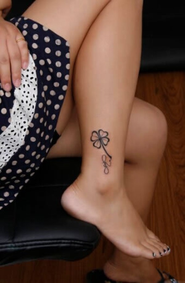 单线四叶草加字母图腾纹身_腿部纹身图案大全_纹身图吧