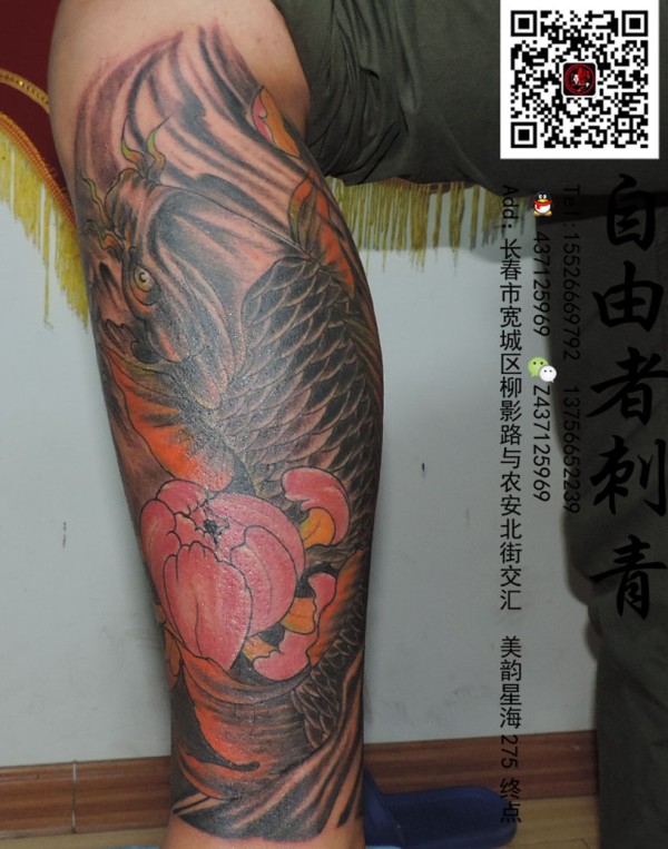 包小腿招财鱼半甲纹身_腿部纹身图案大全_纹身图吧