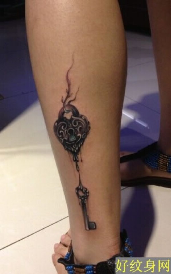 小腿上的爱心锁纹身图案推荐爱心锁与钥匙图案_腿部纹身图案大全_纹身图吧