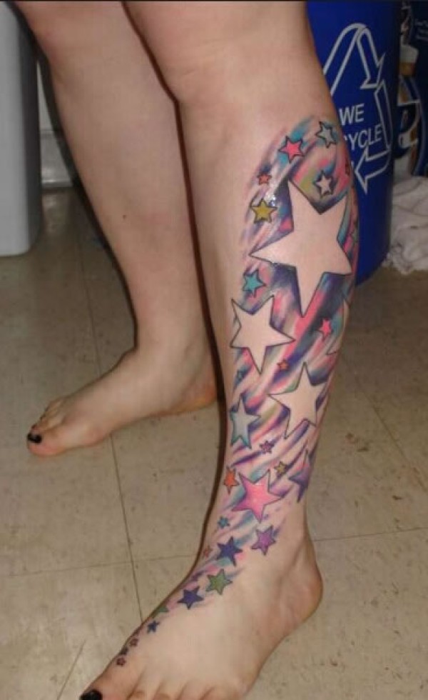 腿部彩色的星云纹身图案彩色的星空图案纹身_腿部纹身图案大全_纹身图吧