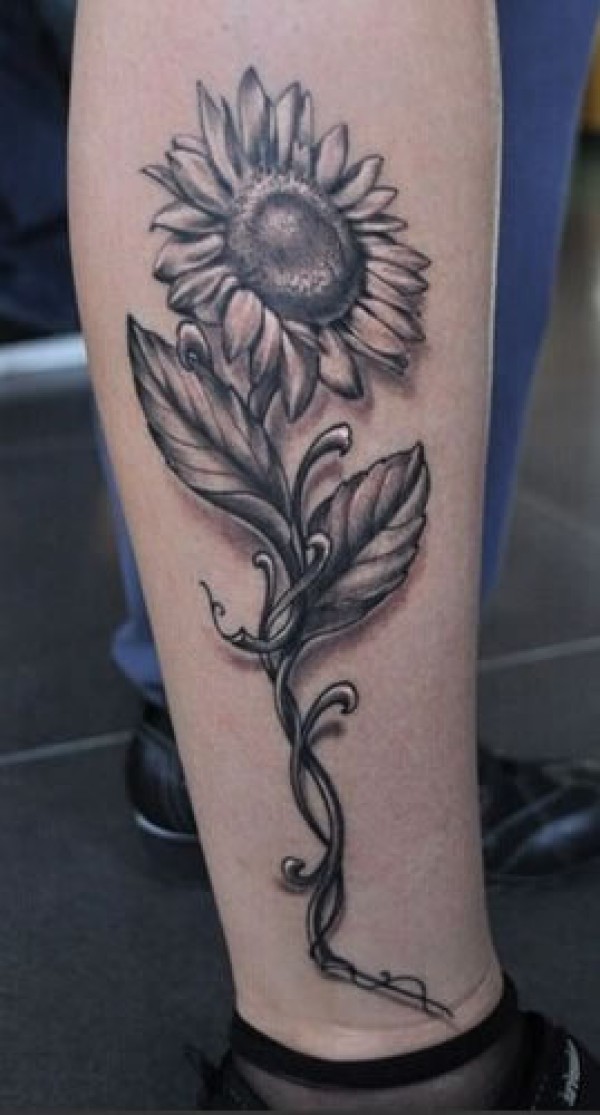 小腿上清新可人的向日葵纹身图_腿部纹身图案大全_纹身图吧
