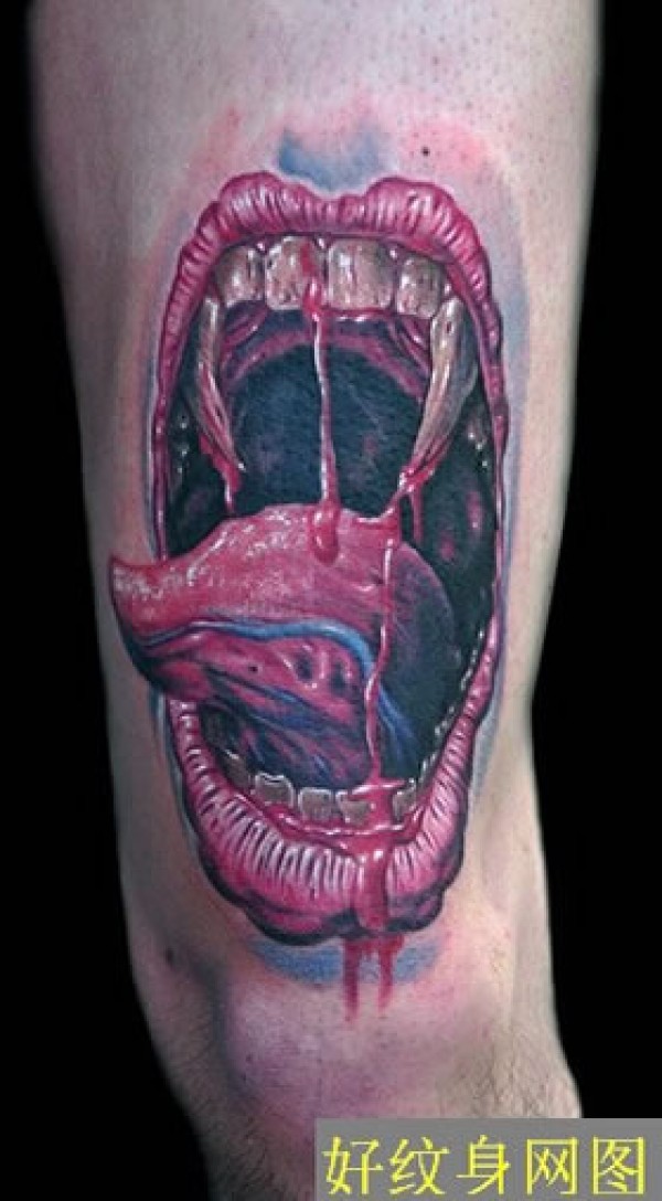 超级恐怖的血口纹身看着纹身图案中的血滴与獠_腿部纹身图案大全_纹身图吧
