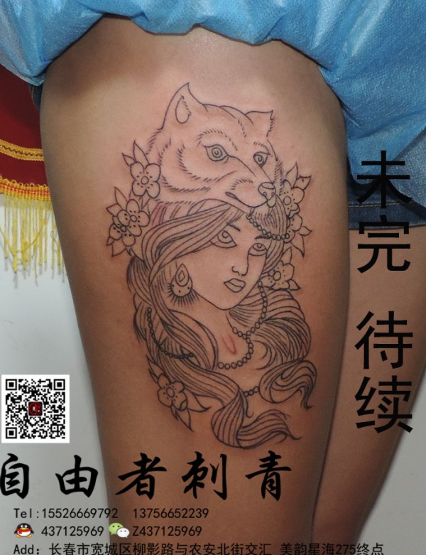 school风格的美女与狐狸纹身未完待续_腿部纹身图案大全_纹身图吧