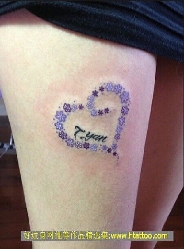 美女大腿上精美的爱心纹身图很有艺术性的爱心_腿部纹身图案大全_纹身图吧