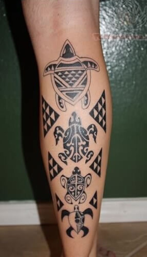 小腿上成群的海龟图腾纹身一字排开的海龟图腾_腿部纹身图案大全_纹身图吧
