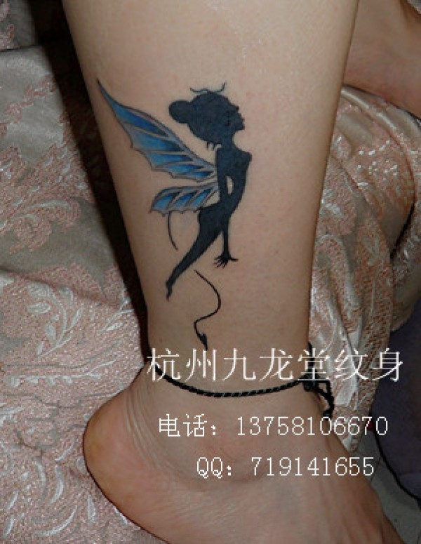 小腿上轻盈的小精灵图案纹身精美的蓝翼小精灵_腿部纹身图案大全_纹身图吧