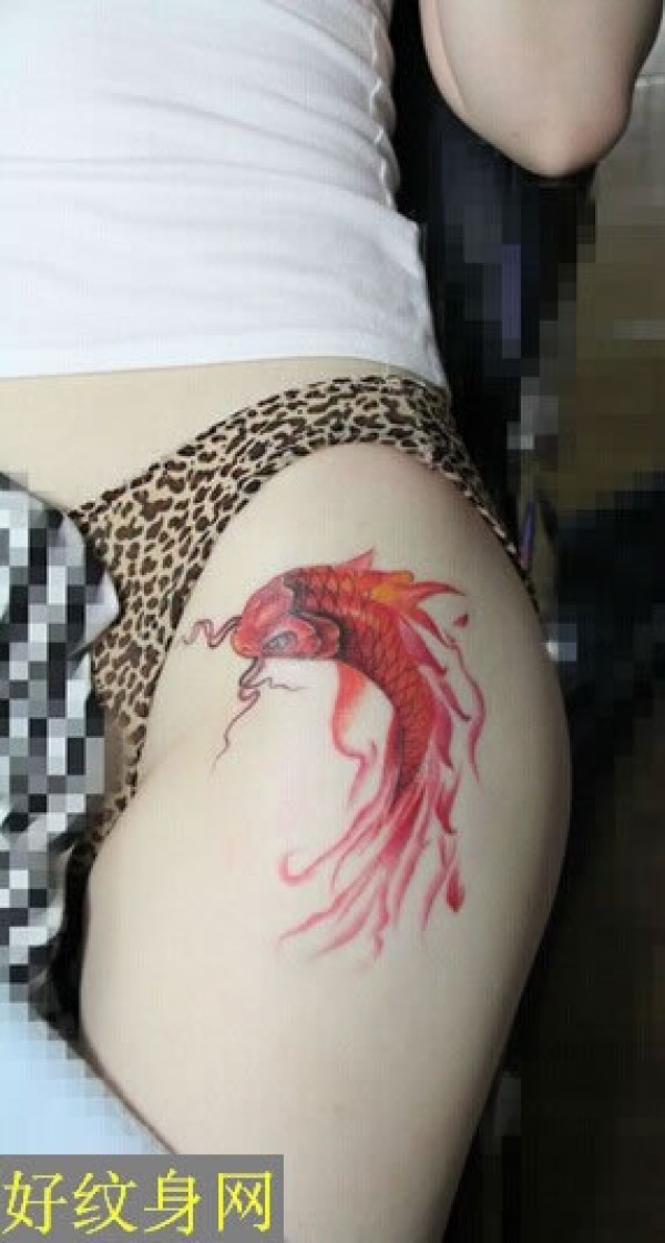 美女修长大腿上红色的金鱼纹身图案纹身的欣赏_腿部纹身图案大全_纹身图吧