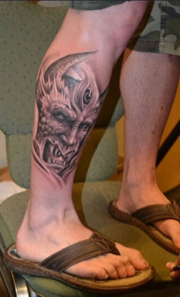 腿部黑白恶魔纹身图案推荐三眼恶魔图案_腿部纹身图案大全_纹身图吧