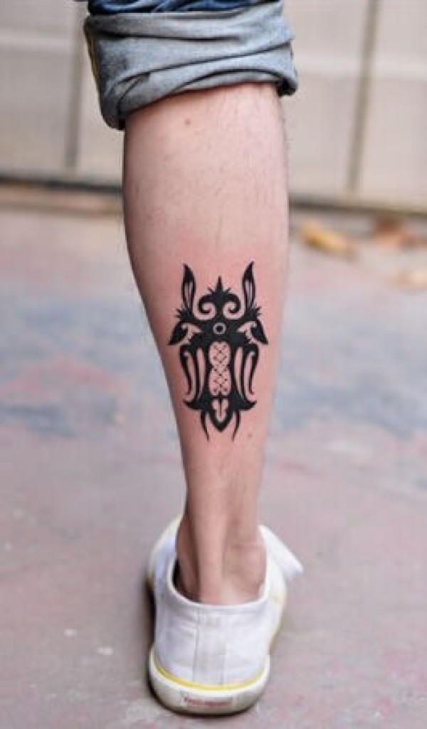 腿部鼎形图腾纹身小腿上的复古鼎形图案图腾纹_腿部纹身图案大全_纹身图吧