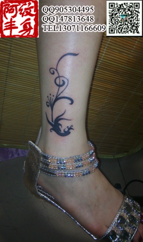 腿部彩色贝斯吊链音符纹身_腿部纹身图案大全_纹身图吧