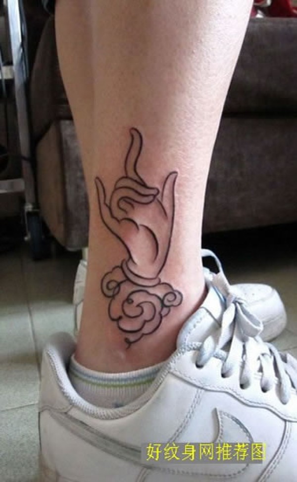佛手纹身,腿部神圣的佛手纹身图案靠近脚裸处_腿部纹身图案大全_纹身图吧