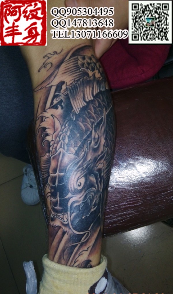 小腿上凶猛的食人鱼图案纹身大全用凶猛的鱼图_腿部纹身图案大全_纹身图吧