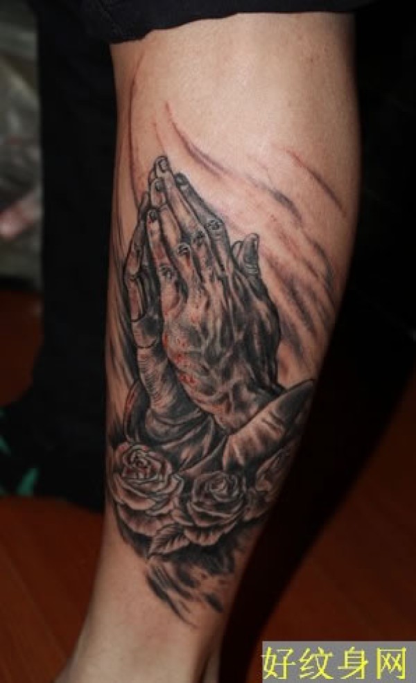 小腿上素色的祈祷之手纹身图案大全小腿上素色_腿部纹身图案大全_纹身图吧