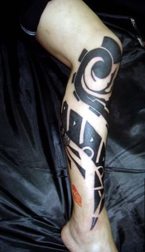 包小腿的个性图腾纹身螺旋状的包小腿图腾纹身_腿部纹身图案大全_纹身图吧