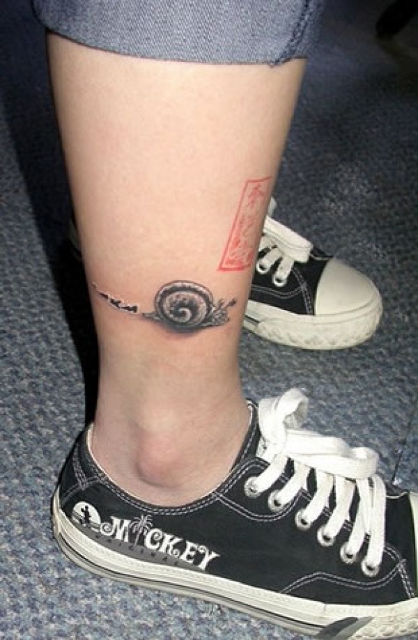 小腿上的蜗牛纹身图案推荐爬行的蜗牛纹身图案_腿部纹身图案大全_纹身图吧