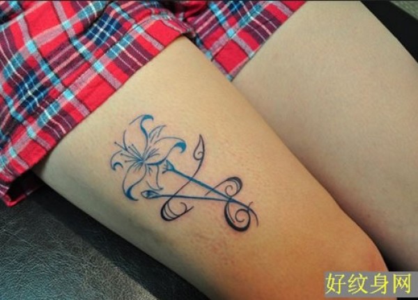 美女大腿上的花枝纹身图案欣赏大腿上的单线花_腿部纹身图案大全_纹身图吧
