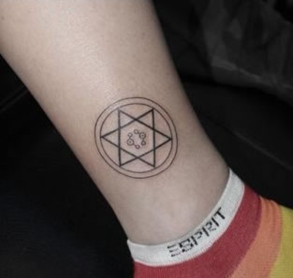 小腿上非常简单的六芒星纹身图案大全圆圈包裹_腿部纹身图案大全_纹身图吧