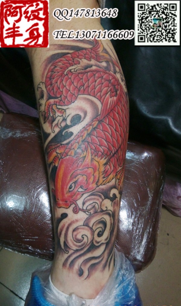 腿部彩色纹身,栩栩如生的鳌鱼纹身图案大全小_腿部纹身图案大全_纹身图吧