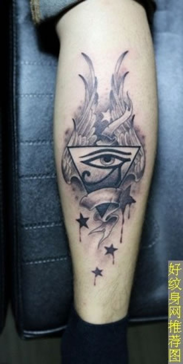 小腿上素色的上帝之眼纹身图案带翅膀的三角眼_腿部纹身图案大全_纹身图吧