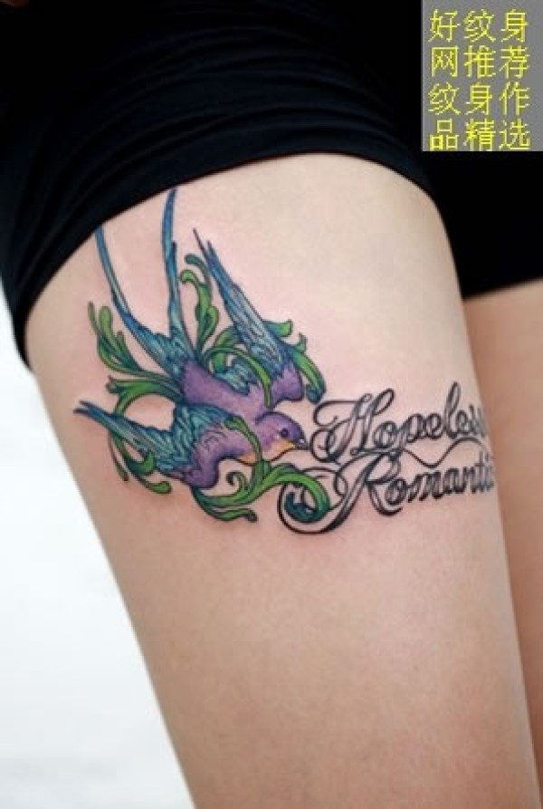美女性感大腿上的彩绘燕子纹身图案美女大腿上_腿部纹身图案大全_纹身图吧