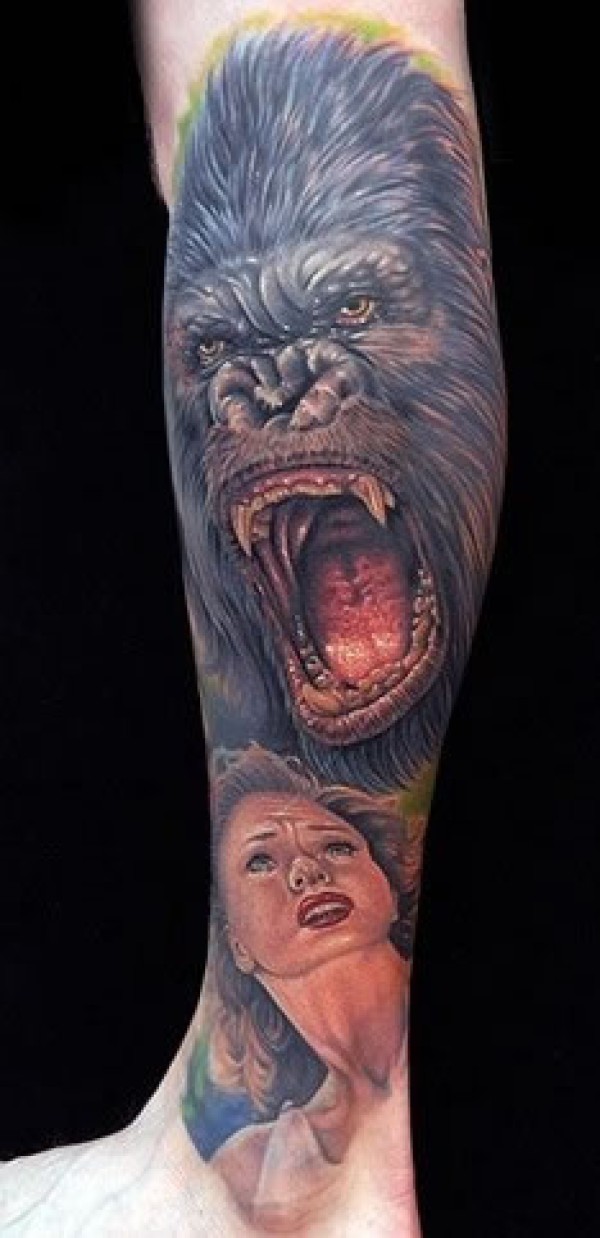 经典影视《金刚》里的猩猩与主人公纹身图案这_腿部纹身图案大全_纹身图吧