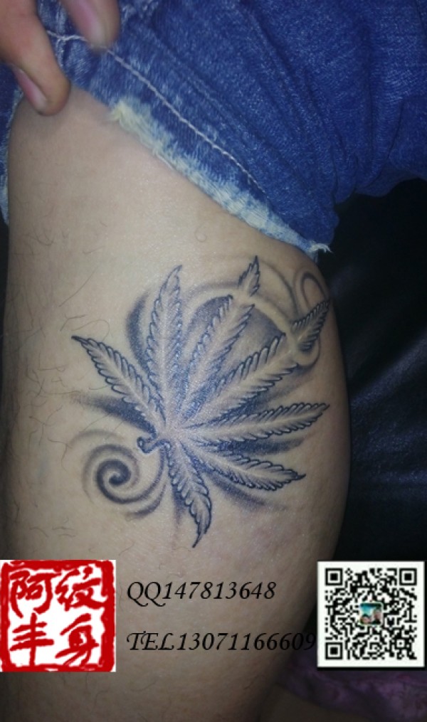 小腿上素色的大麻叶纹身图片北京纹身作品,带_腿部纹身图案大全_纹身图吧