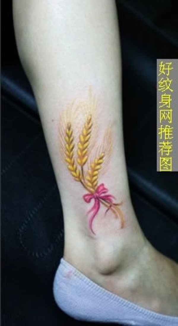小腿上寓意大丰收的麦穗小图案纹身女士小腿上_腿部纹身图案大全_纹身图吧