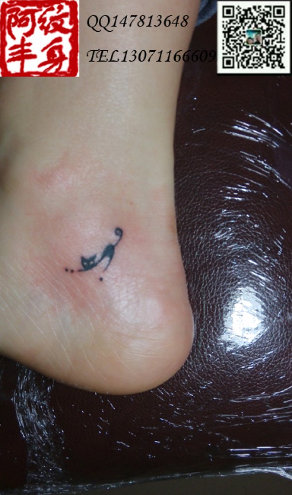 腿部伸懒腰的猫咪小图案纹身非常袖珍的猫咪图_腿部纹身图案大全_纹身图吧