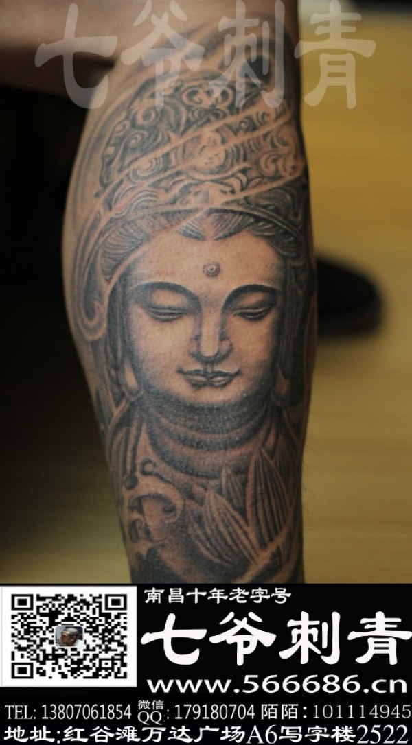 腿部佛像纹身,小腿上石雕佛像纹身图片纹身图_腿部纹身图案大全_纹身图吧
