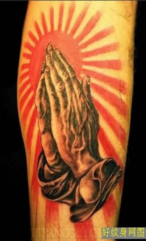 小腿上圣光普照的祈祷之手纹身图案纹身图案想_腿部纹身图案大全_纹身图吧