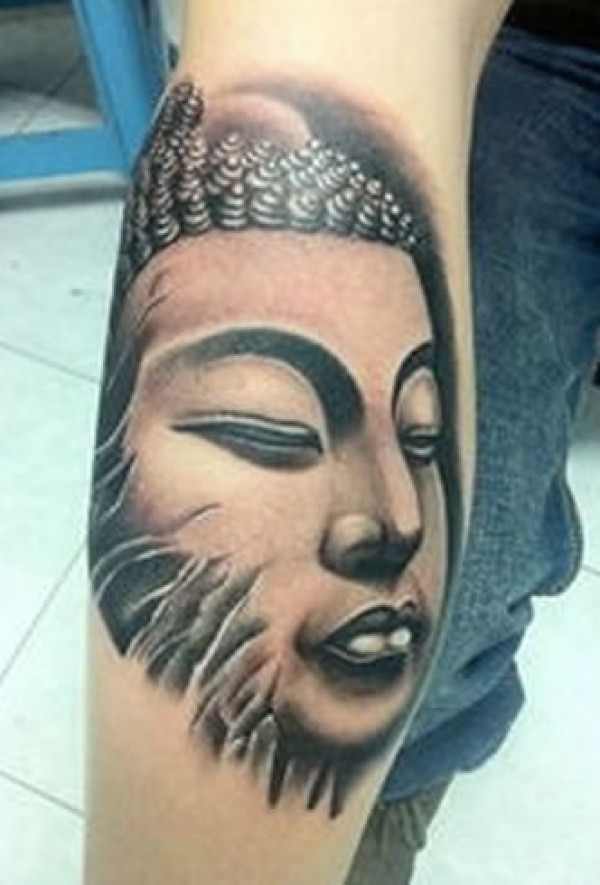 小腿上无割线的佛像纹身图案无割线纹身令纹身_腿部纹身图案大全_纹身图吧