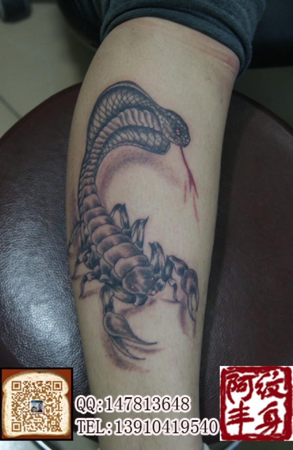 腿部蛇头毒蝎子纹身图毒蛇与毒蝎子的组成图案_腿部纹身图案大全_纹身图吧