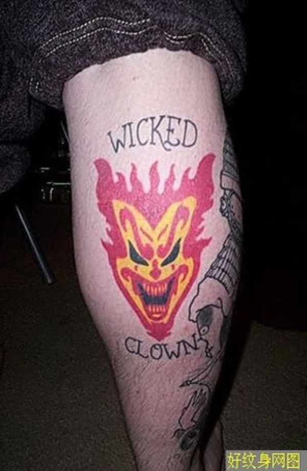 腿肚子上的火焰魔头图案纹身魔头形状的火焰纹_腿部纹身图案大全_纹身图吧