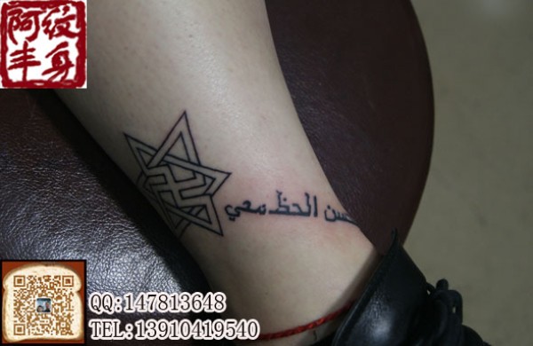 小腿上的六芒星加文字纹身图阿丰推荐的腿部六_腿部纹身图案大全_纹身图吧