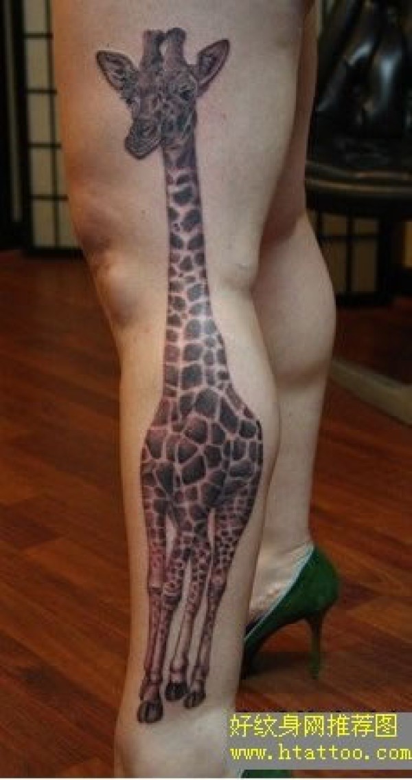 小腿上的长颈鹿纹身图好俊美的长颈鹿图案纹身_腿部纹身图案大全_纹身图吧