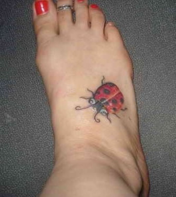 脚背的橙红色七星瓢虫图案纹身腿部昆虫小图案_腿部纹身图案大全_纹身图吧