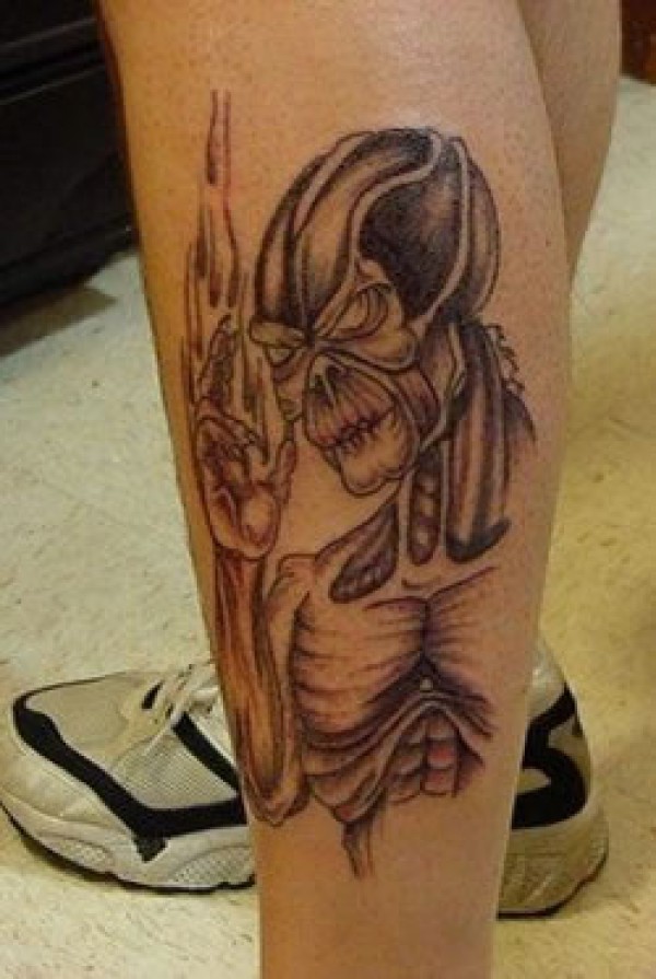 小腿上幻想的外星人图案纹身这款外星人纹身图_腿部纹身图案大全_纹身图吧